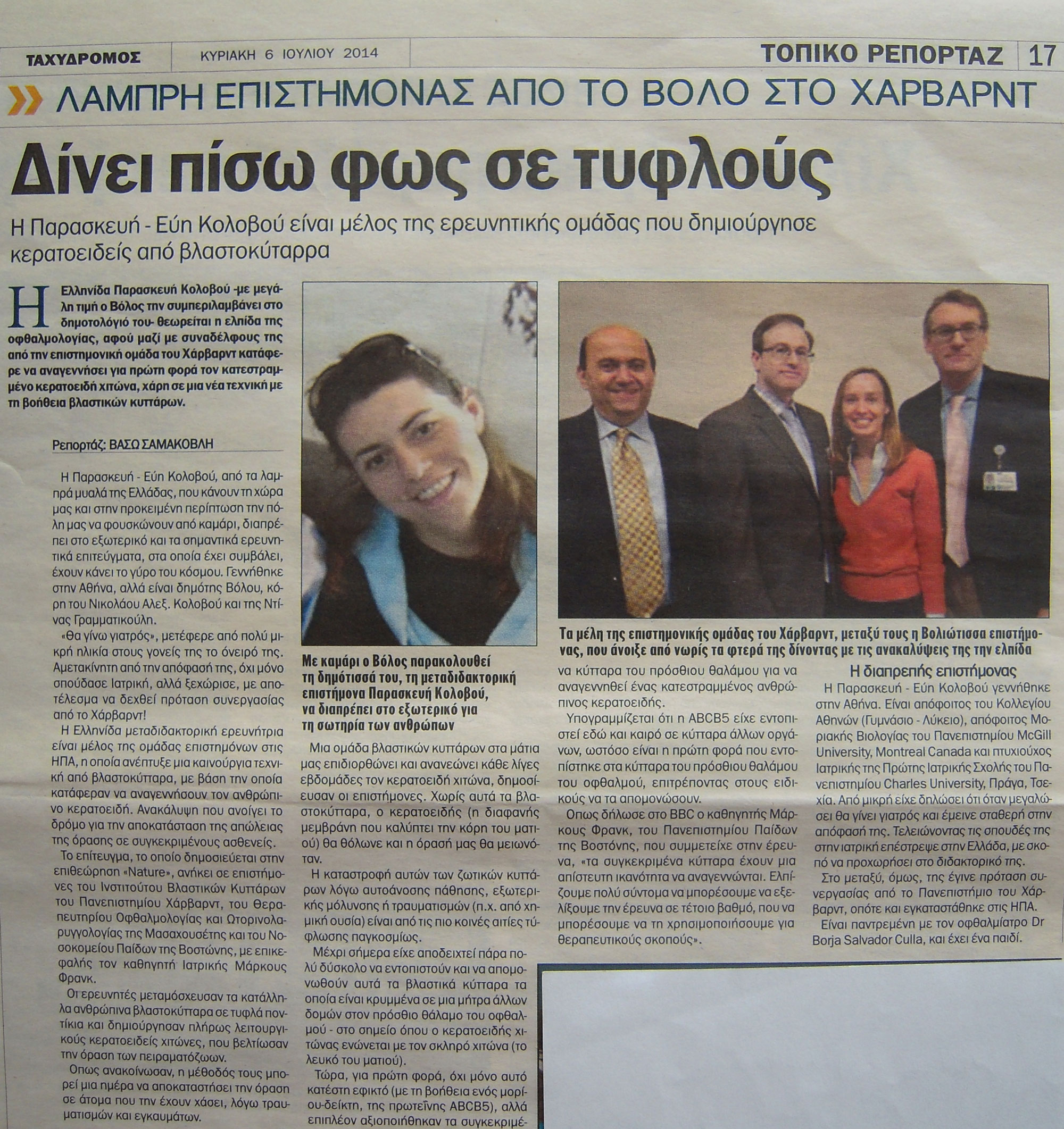 Παρασκευή Εύη Κολοβού – από το Βόλο στο Χάρβαρντ δίνει φως στους τυφλούς
