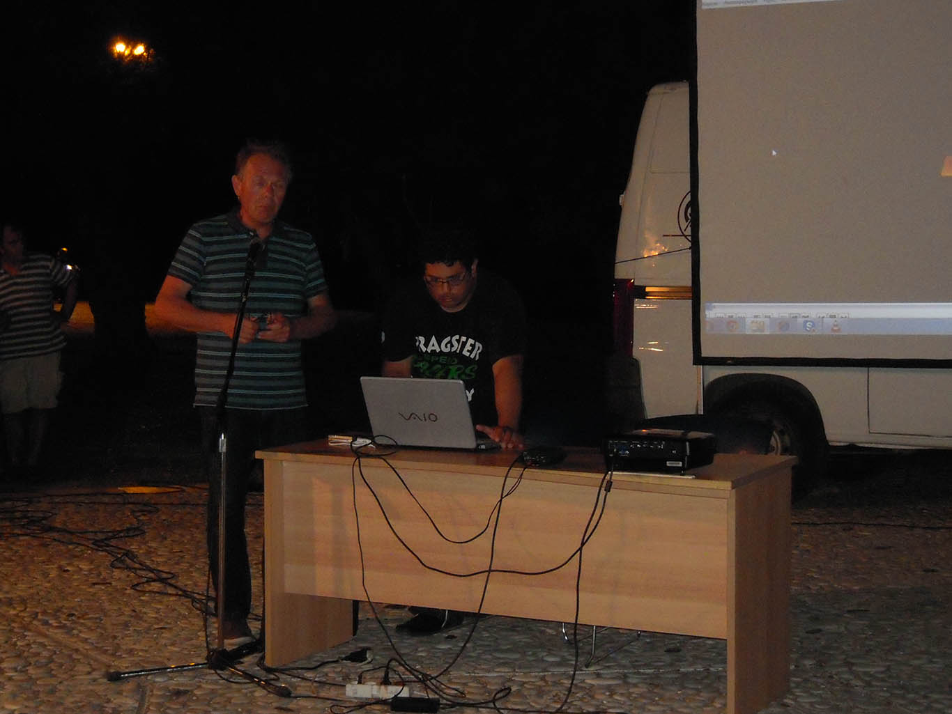 β. Προβολή βίντεο του θεατρικού «Γύρω από τη Σελήνη» με ελληνικούς