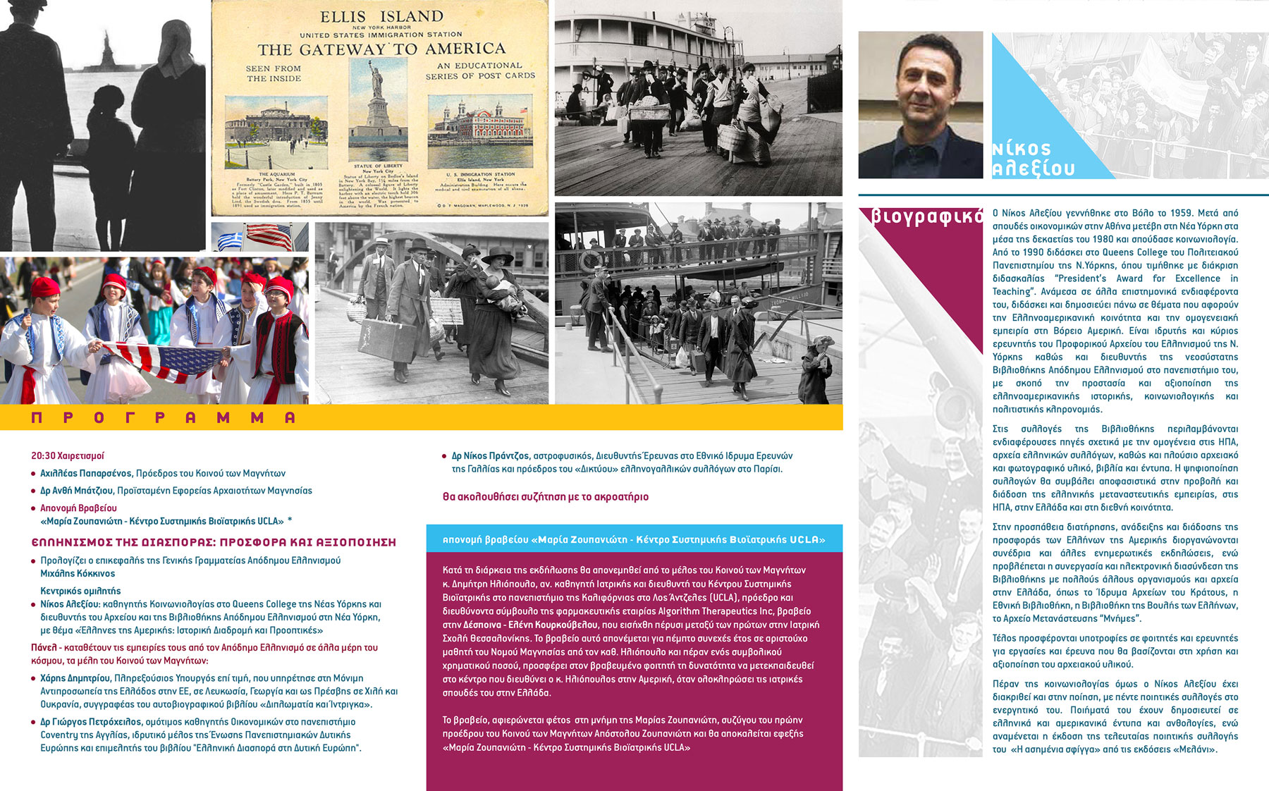 Στον «Ελληνισμό της Διασποράς: Προσφορά και Αξιοποίηση» θα αφιερώσει την φετινή κεντρική εκδήλωση του το «Κοινόν των Μαγνήτων», το παγκόσμιο σωματείο αποδήμων Μαγνήτων με έδρα το Βόλο. Η εκδήλωση θα πραγματοποιηθεί στον αύλειο χώρο του Αθανασάκειου Αρχαιολογικού Μουσείου Βόλου την Τετάρτη, 2 Αυγούστου, ώρα 20:30 με κεντρικό ομιλητή το εκλεκτό μέλος του σωματείου Νίκο Αλεξίου, καθηγητή κοινωνιολογίας στο Queens College της Νέας Υόρκης και διευθυντή του Αρχείου και της Βιβλιοθήκης του Απόδημου Ελληνισμού στη Νέα Υόρκη. Ο κ Αλεξίου θα αναπτύξει το θεμα «Έλληνες της Αμερικής: Ιστορική Διαδρομή και Προοπτικές», που βασίζεται στην πολυετή έρευνα του για την ελληνοαμερικανική κοινότητα.